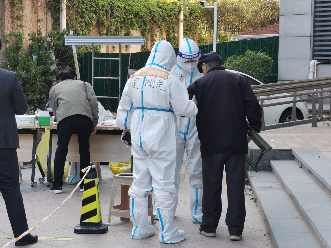 5月2日下午,核酸检测现场排起了长队,我正拿着喇叭大声招呼着大家有序做核酸,别说,第一次拿起这个“话筒”,感觉像主持人一样。期间,我看到有位老大爷腿脚不便,我主动过去搀扶他,索性做起了专职“管家”,但凡看到有行动不便的老人、小孩等,我都会主动上前协助,社区的杜大妈一见到我就说,这圆乎乎的大白又来了,真是有暖心又贴心,俺们可喜欢你了!听到这,我还有点热泪盈眶,顿时觉得这“大白”当的真值!