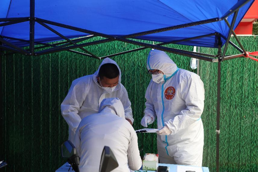 下午5点,核酸检测工作持续开展。“志愿者主要负责维持现场秩序、对居民的健康检测登记码扫码、登记居民的具体信息以及电话号码核对等工作。”林冬向记者介绍着主要任务,“要做好准备,一旦开始工作就将近6个小时不能休息。”志愿服务第二天,全员参与共完成了四个街道20 余个居民区、14000 余户居民的核酸检测、信息登记、居民安抚、防疫物资发放等任务。