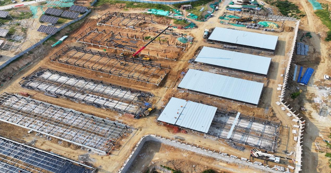 据了解,目前该项目一标段农光互补区域已完成49%,其中,光伏展示区安装完成,示范区以外部分正在进行桩基成孔;一标段猪舍正在进行钢结构安装施工,猪舍地面浇筑及粪沟砌筑,整体完成57%,牛棚正在进行石方破除及内倒,土石方进度100%,各项施工按照前期规划有序推进。