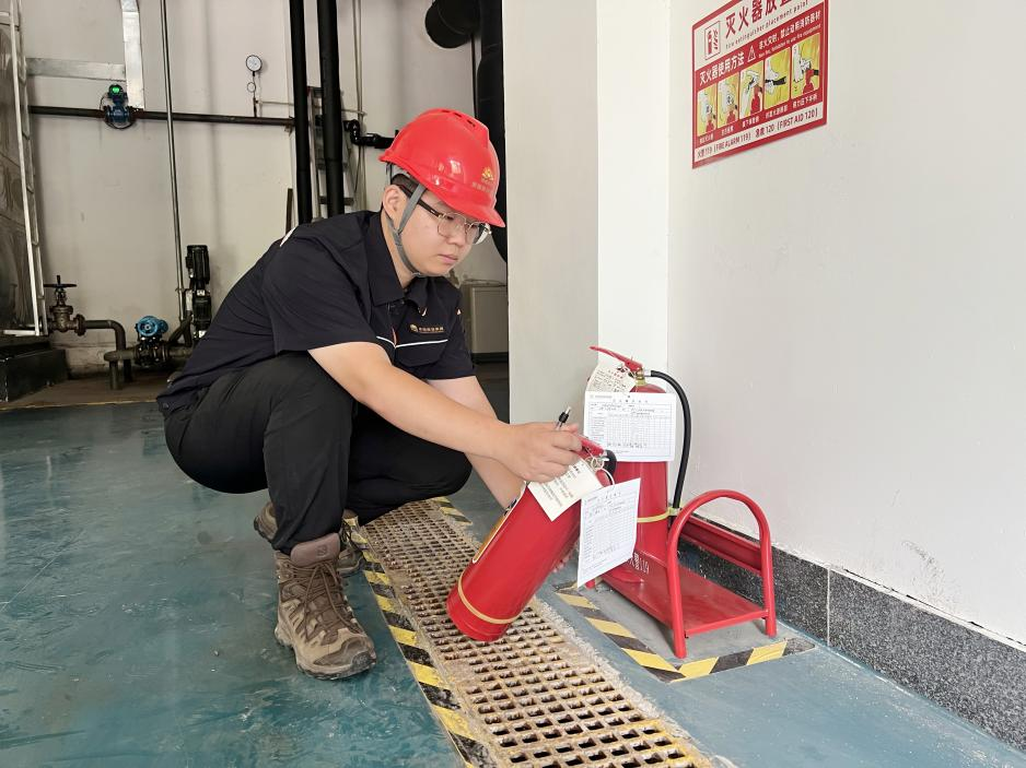 消防安全是供热服务质量的重要保障,也是周浩宸日常工作的“必答题”。按照“强化安全管理”要求,他定期检查站内消防设施,查看压力、瓶身和有效期标识等情况,并模拟紧急场景测试出水压力与阀门灵敏度,确保随时可用。他还钻研使用说明,将复杂流程编成简易口诀分享给同事,提升应急能力,以“防患于未然”守护站点与居民安全。